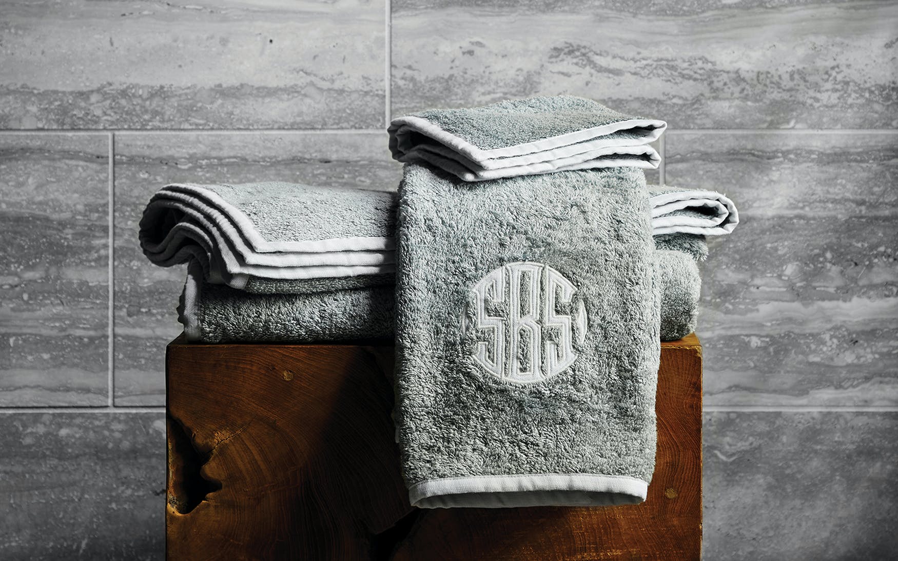 Our lush Enzo towels feature Cairo long-staple cotton terry finished with half-inch linen piping—smartly mitered at the corners—in a handsome palette of colors. Customize with an eye-catching monogram in classic Matouk style.
