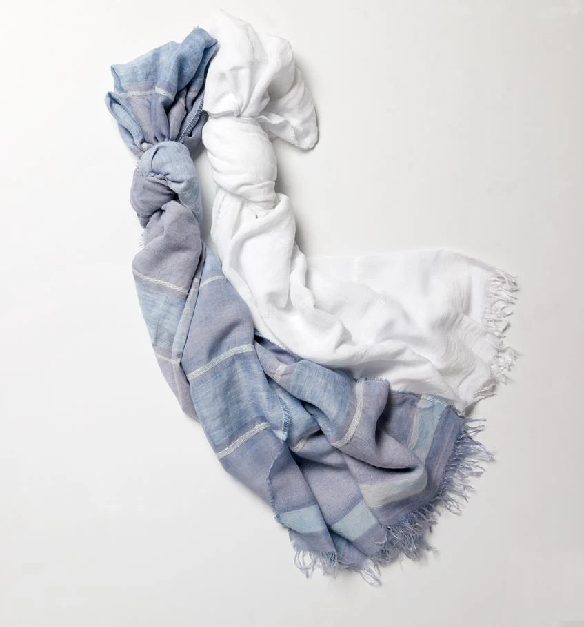 Garda is a light blend of linen, modal and fine yarns, and is perfect for transitional weather. A woven jacquard of alternating stripes, this airy scarf is finished with soft eyelash fringe for a dreamy look.